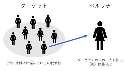 「片付けに悩んでいる40代女性」がターゲットだとしたら、ペルソナはその中の一人です。
