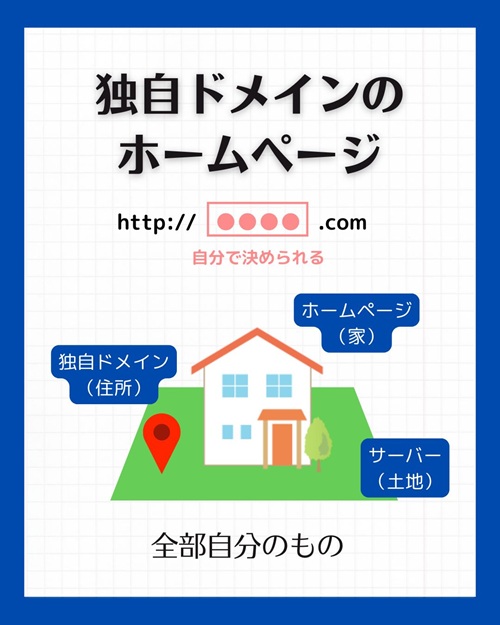 - 独自ドメイン = 自分専用の住所(世界に一つだけのURL)